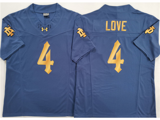 > Notre Dame Fighting Irish #4 Jeremiyah Love Blue College Football Limited Jersey