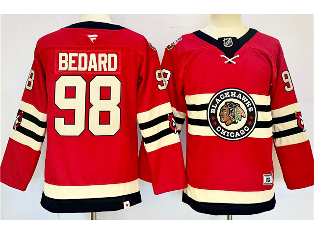 > Chicago Blackhawks #98 Connor Bedard Youth Red 2025 Winter Classic Jersey