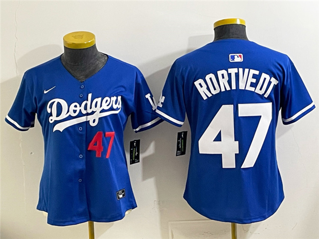 > Los Angeles Dodgers #47 Ben Rortvedt Women's Royal Blue Limited Jersey
