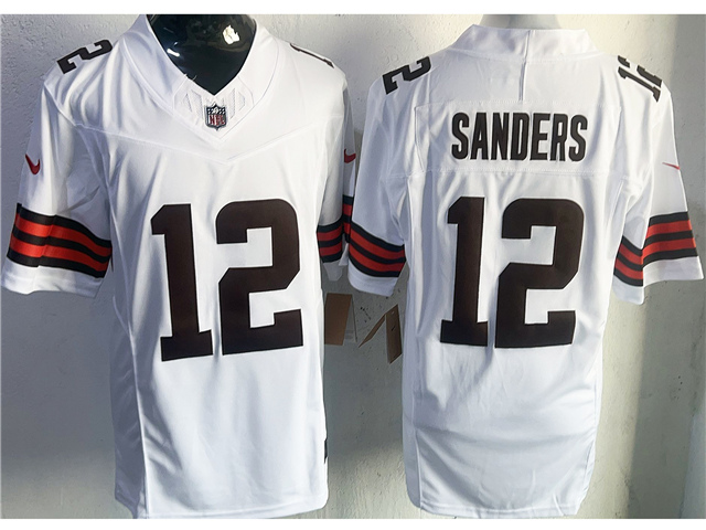 > Cleveland Browns #12 Shedeur Sanders White Vapor F.U.S.E. Limited Jersey