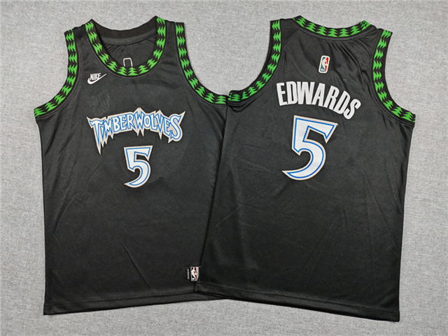 > Minnesota Timberwolves #5 Anthony Edwards Youth 2025-26 Black Classic Swingman Jersey