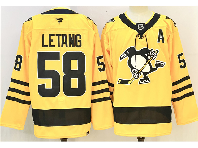> Pittsburgh Penguins #58 Kris Letang 2025-26 Third Gold Jersey
