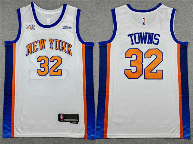 > New York Knicks #32 Karl-Anthony Towns 2025-26 White City Edition Swingman Jersey