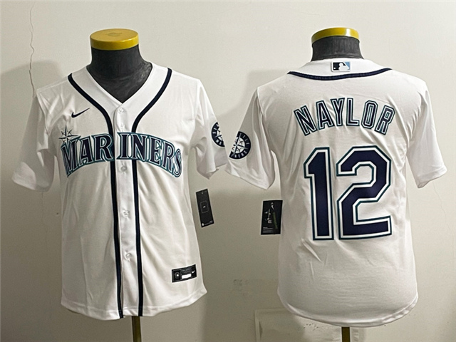 > Seattle Mariners #12 Josh Naylor Youth White Limited Jersey