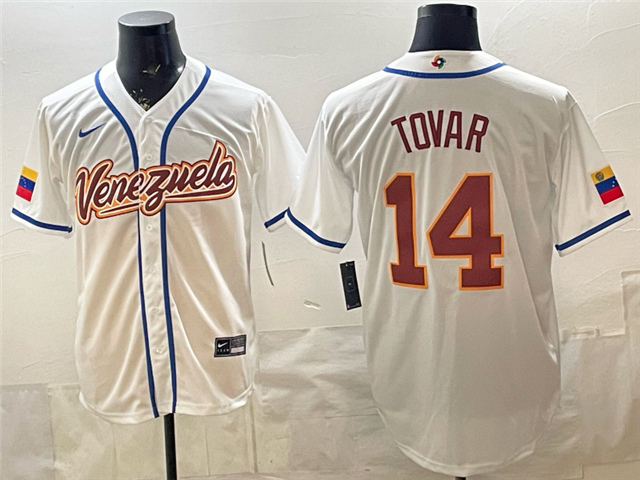> Venezuela Baseball #14 Ezequiel Tovar White 2026 World Baseball Classic Jersey