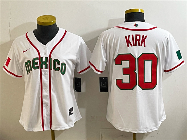 > Mexico Baseball #30 Alejandro Kirk Women's White 2026 World Baseball Classic Jersey