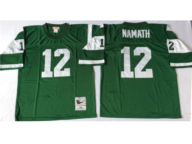 > New York Jets #12 Joe Namath 1968 Throwback Green Jersey