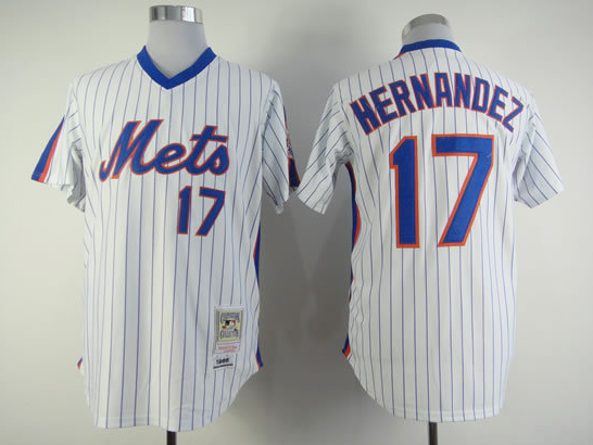 > New York Mets #17 Keith Hernandez 1986 White Pinstripe Throwback Jersey