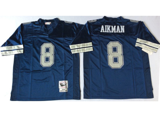 > Dallas Cowboys #8 Troy Aikman 1994 Throwback Navy Blue Jersey